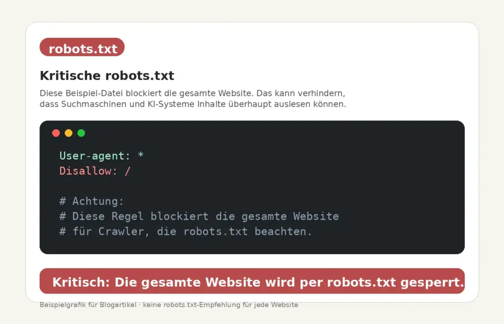 Die robots.txt steuert das Crawling, aber sie ist keine absolute Zugangssperre. Google weist selbst darauf hin, dass sich seriöse Crawler daran halten, andere aber nicht unbedingt.
