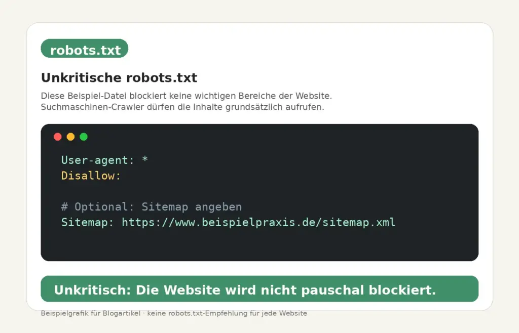 Das ist eine kleine Datei deiner Website, die Suchsystemen Hinweise gibt, welche Bereiche sie lesen dürfen und welche nicht.